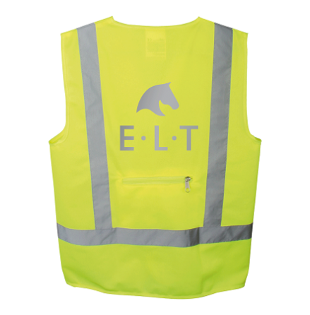 Säkerhet genom mer synlighet! Med reflekterande ränder och dekorativt reflekterande hästhuvudtryck. Kan bäras över alla ytterkläder.